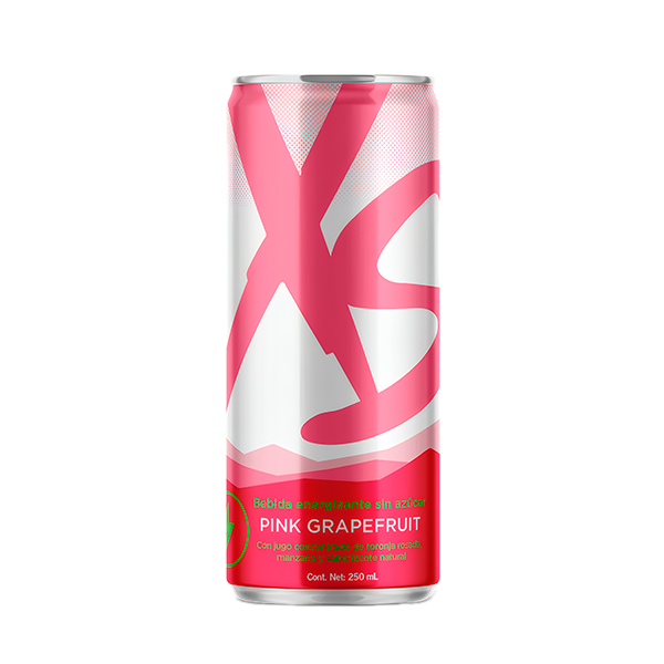 Refresca tu día con XS Pink Grapefruit: sabor toronja rosada vibrante, 25 % de jugo de fruta, sin azúcares añadidos y con un impulso de energía listo para activarte.
